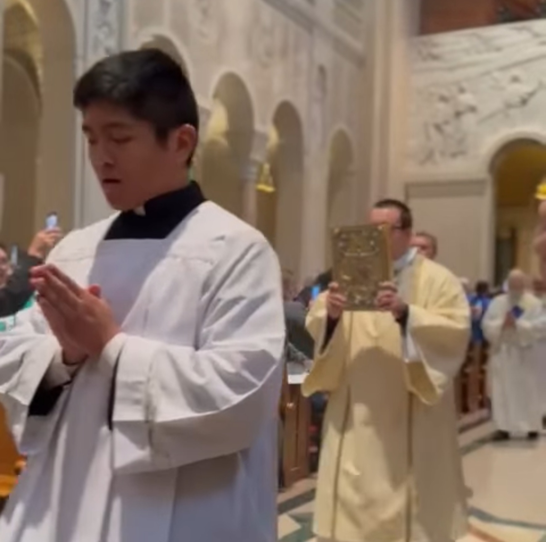 The second photo, my line was finished. Here I am bringing the ciborium back to the Altar after the distribution of the consecrated host and the left over host returns back in the tabernacle. We genuflect and then walk back to our pews.