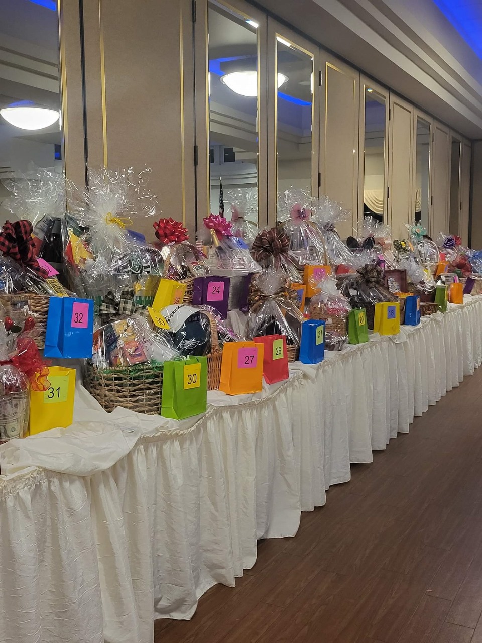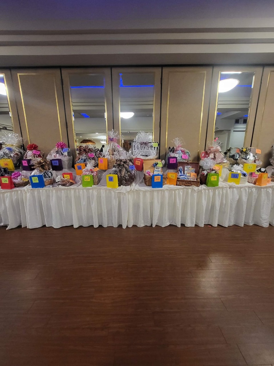 This was our winter fundraiser 2022. It was Elvis impersonator with show girl. I booked this event at one of Our local catering Halls. We had a total of 210 Attendees. All Pictures of the baskets our members made them. I organize a fellowship basket workshop day and all members can make there baskets at the workshop or at home. The group picture I’m standing in the middle. On my left is our Society’s treasure and the right was my former Vice President. All the girls in the photo helped sell tickets for the basket auction. My daughter Toriana is standing in back. Toriana Participates at all of our events.